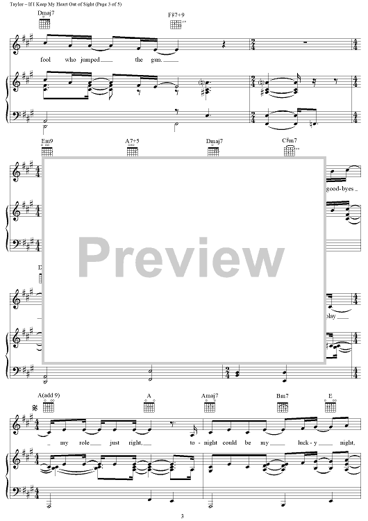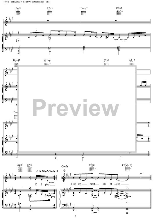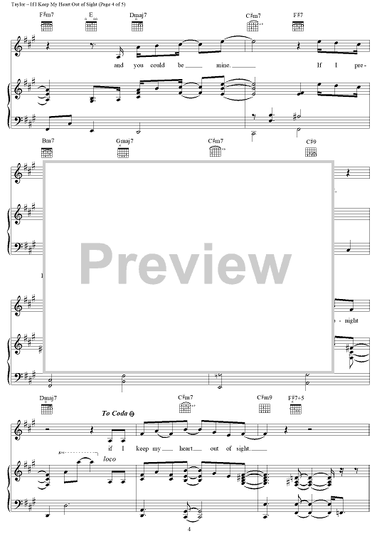 Digital Sheet Music for If I Keep My Heart Out of Sight by James Taylor scored for Piano/Vocal/Chords; id:111693