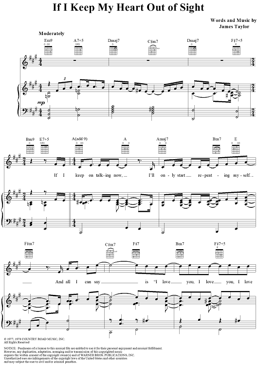 "If I Keep My Heart Out of Sight" Sheet Music by James Taylor