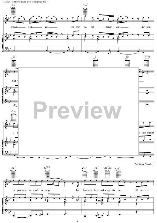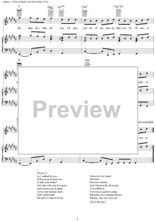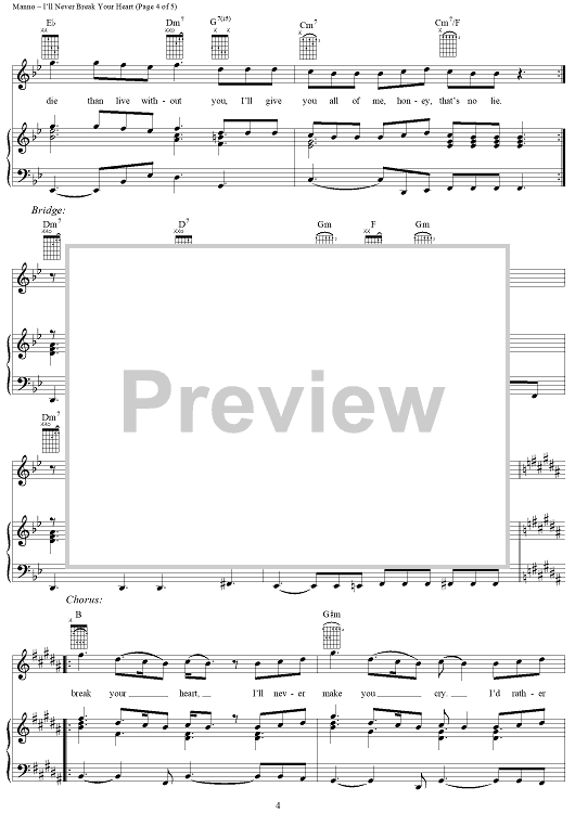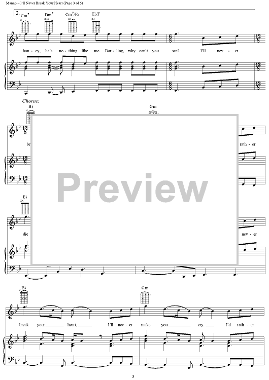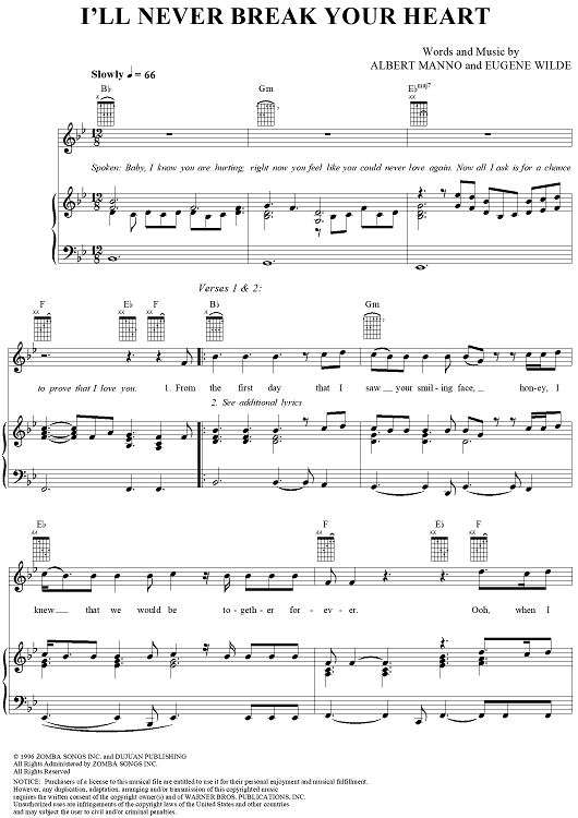 Digital Sheet Music for I'll Never Break Your Heart by Albert Manno, Eugene Wilde, Backstreet Boys scored for Piano/Vocal/Chords; id:109658