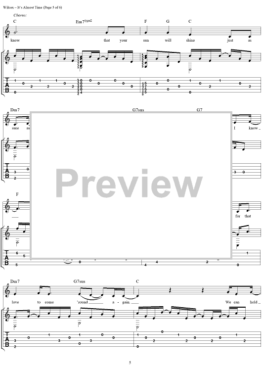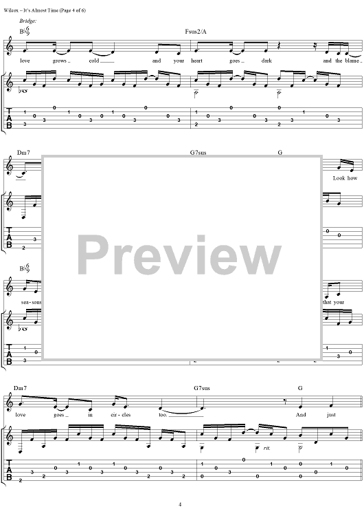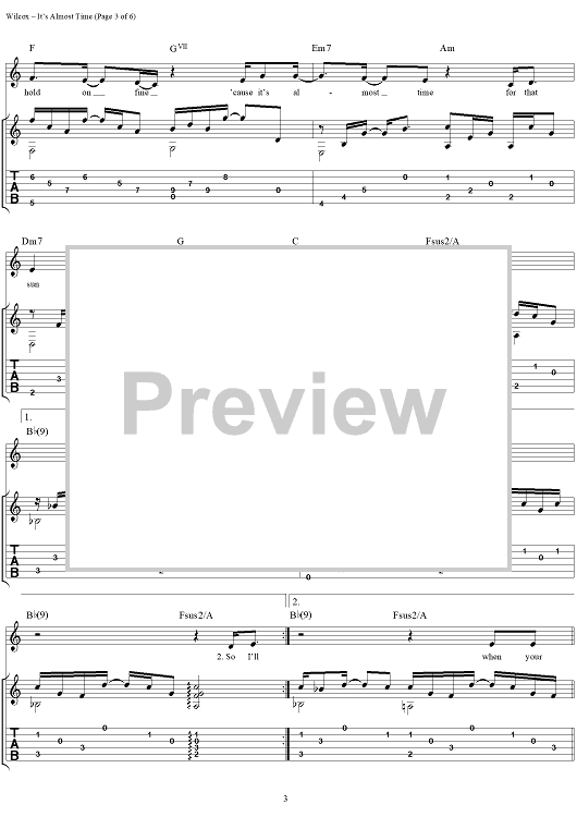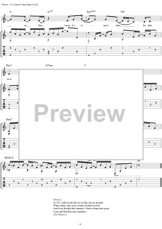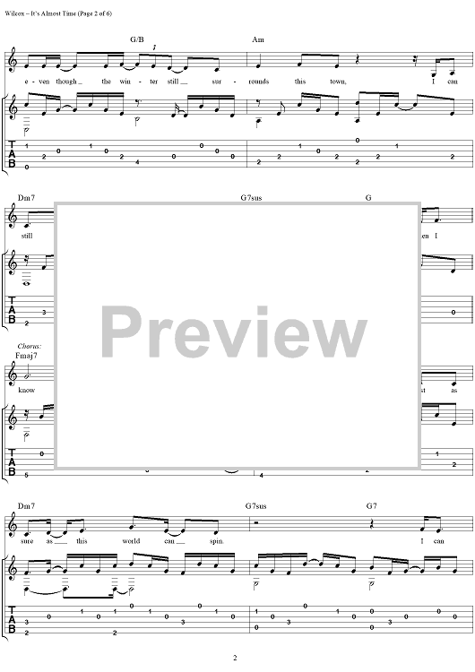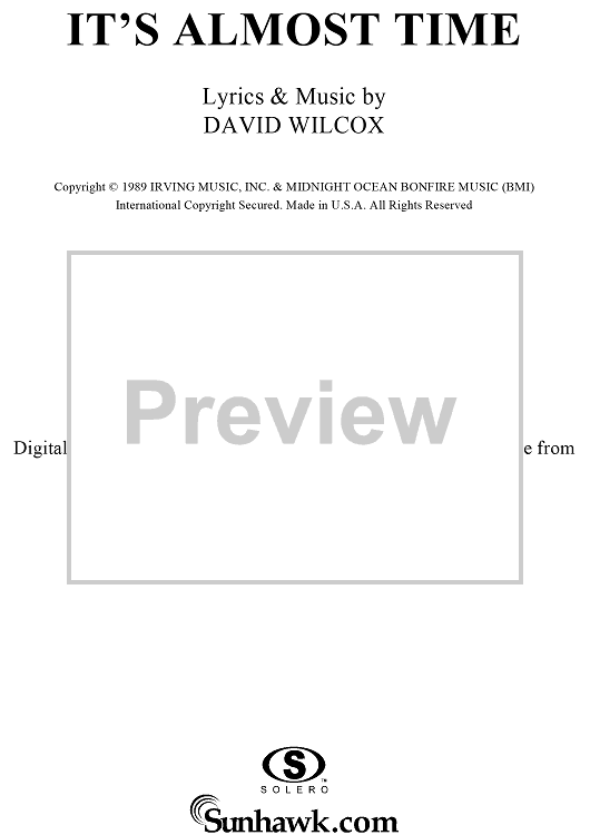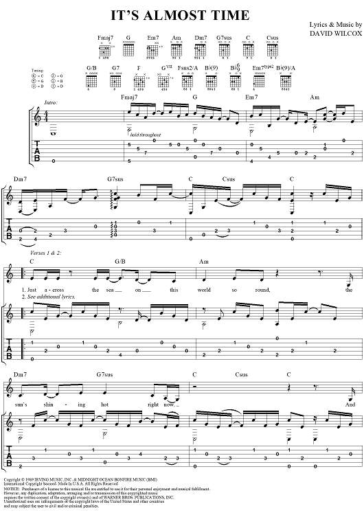 Digital Sheet Music for It's Almost Time by David Wilcox scored for Guitar Tab/Vocal; id:264038