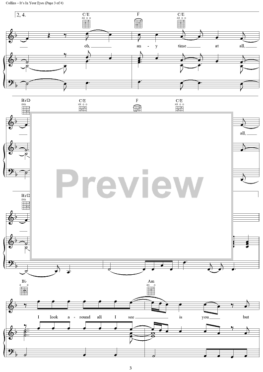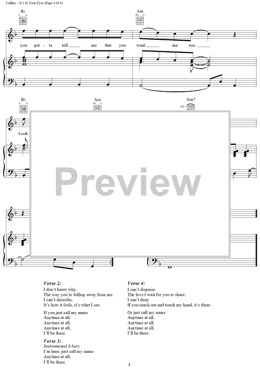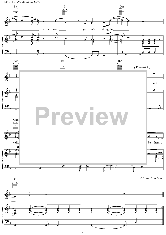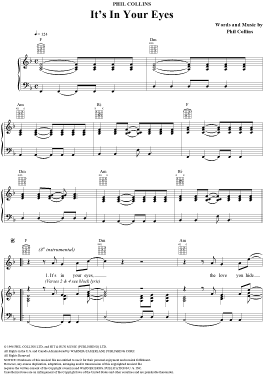 Digital Sheet Music for It's In Your Eyes by Phil Collins scored for Piano/Vocal/Chords; id:109967