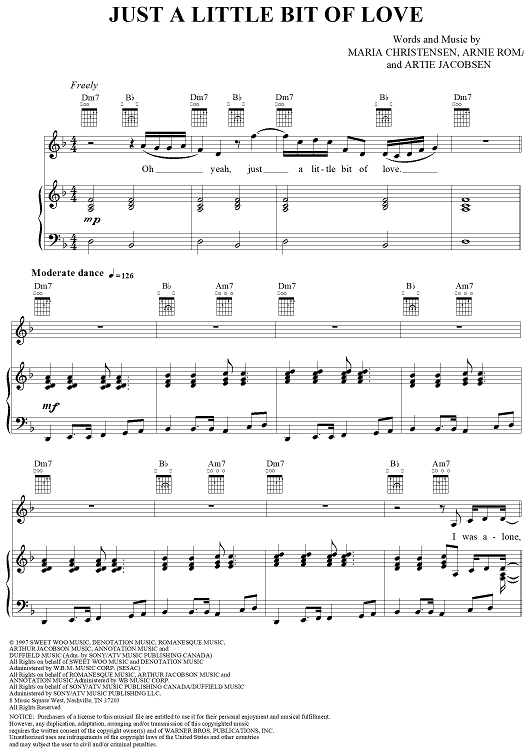 Digital Sheet Music for Just a Little Bit of Love by Celine Dion, Arnie Roman, Maria Christensen, Artie Jacobsen scored for Piano/Vocal/Chords; id:112061
