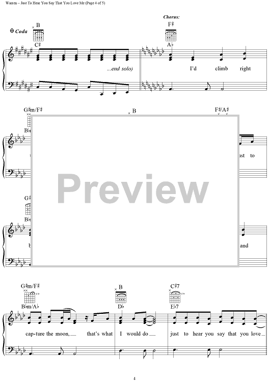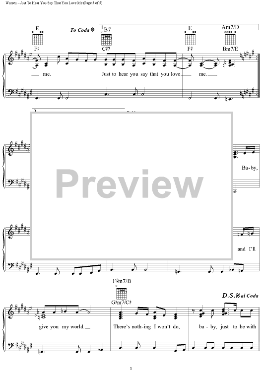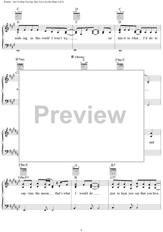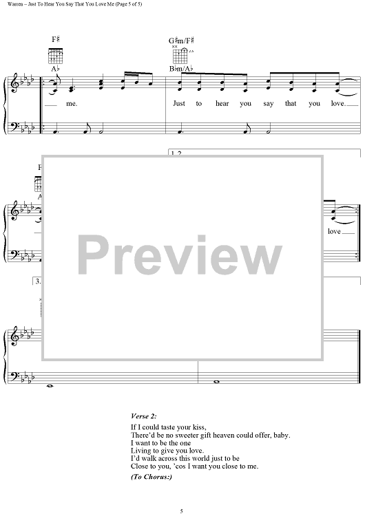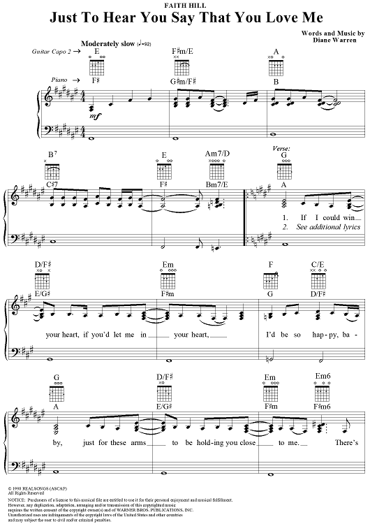 Digital Sheet Music for Just To Hear You Say That You Love Me by Diane Warren, Faith Hill scored for Piano/Vocal/Chords; id:109579