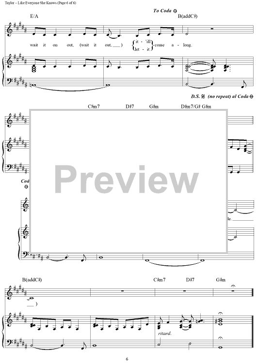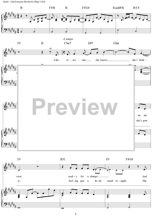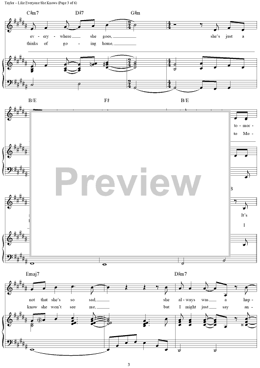 Digital Sheet Music for Like Everyone She Knows by James Taylor scored for Piano/Vocal/Chords; id:112386