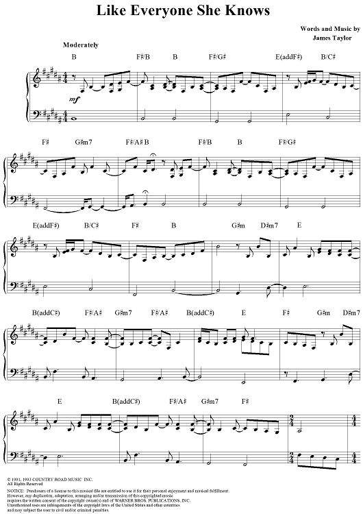 "Like Everyone She Knows" Sheet Music by James Taylor