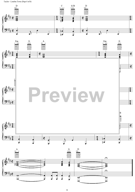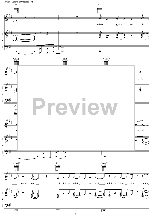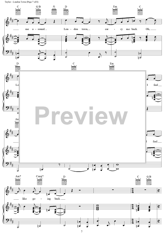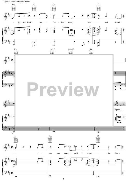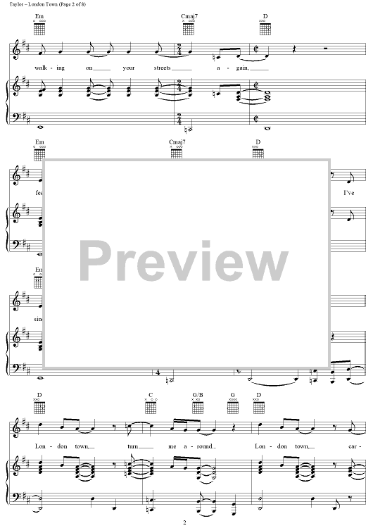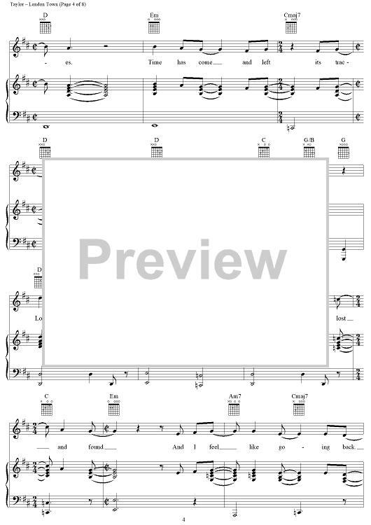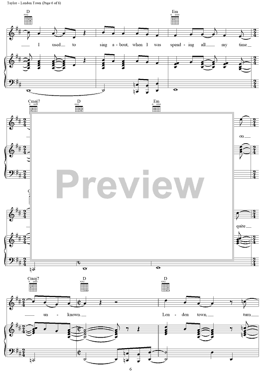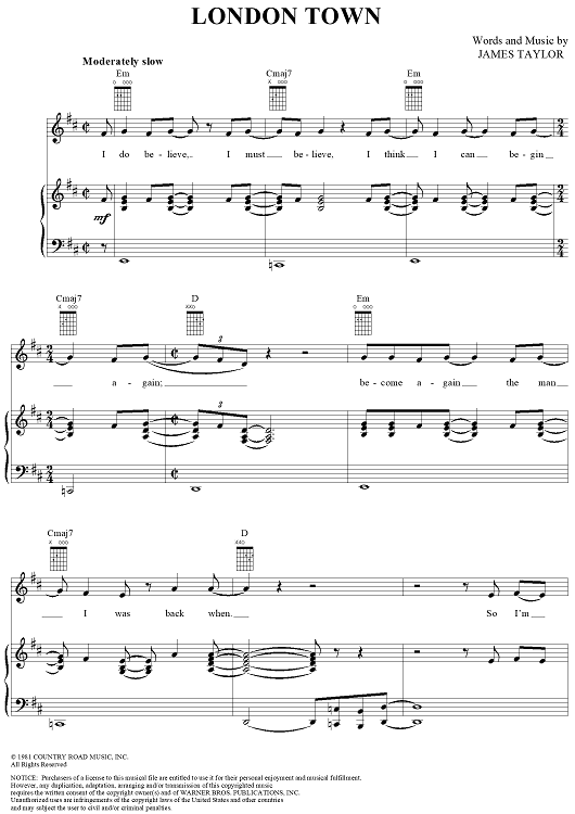 Digital Sheet Music for London Town by James Taylor scored for Piano/Vocal/Chords; id:113595