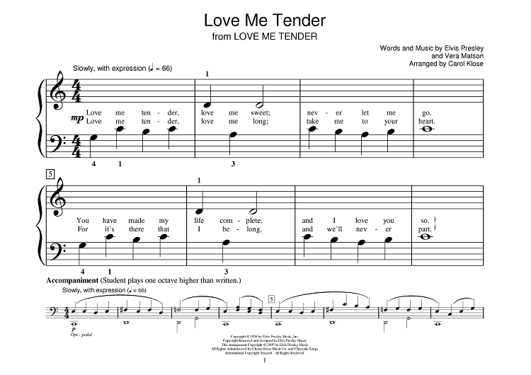 Digital Sheet Music for Love Me Tender by Elvis Presley, Vera Matson, Carol Klose scored for Piano; id:385300