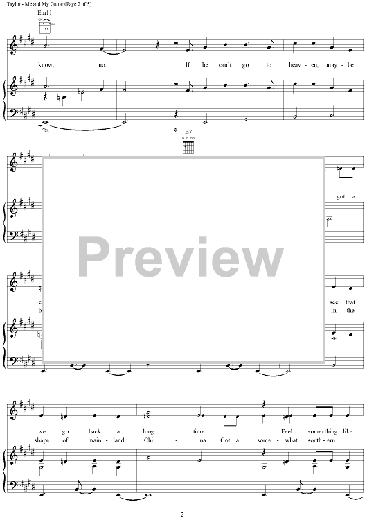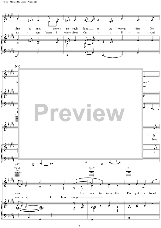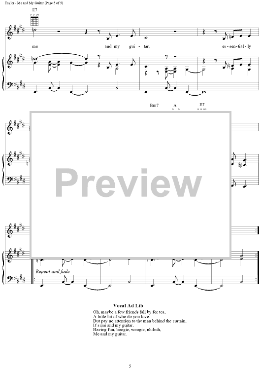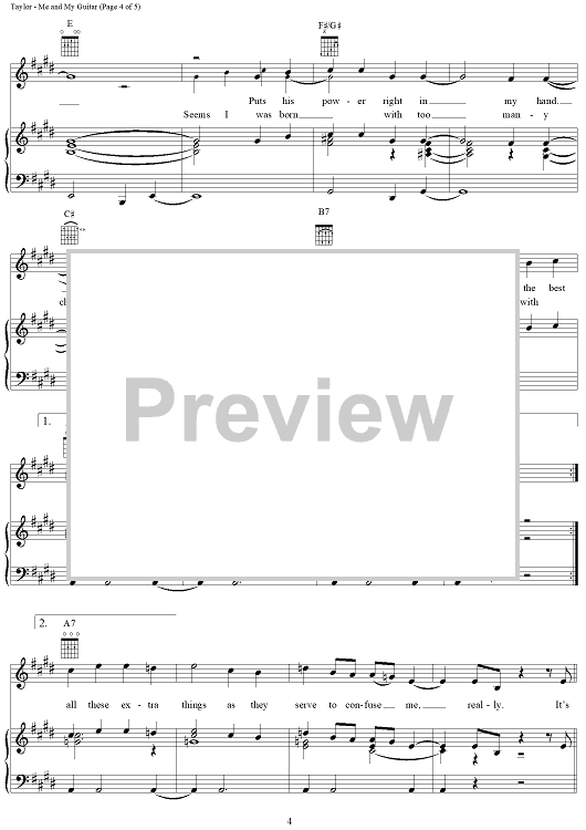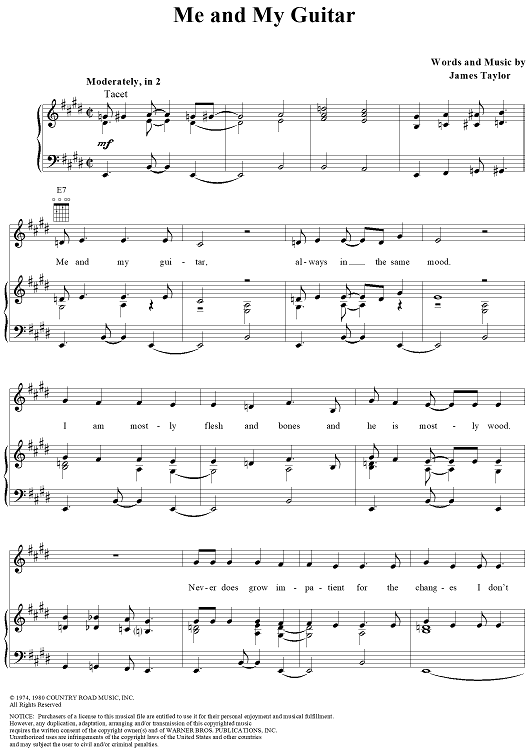 Digital Sheet Music for Me and My Guitar by James Taylor scored for Piano/Vocal/Chords; id:112390