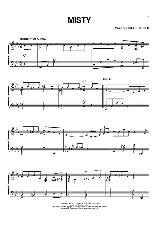 Digital Sheet Music for Misty by Johnny Mathis, Erroll Garner, Johnny Burke scored for Piano; id:386282