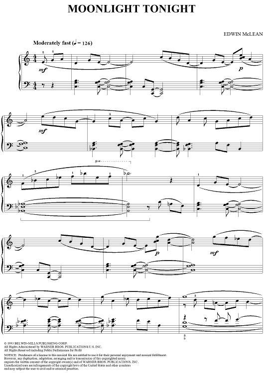 Digital Sheet Music for Moonlight Tonight by Edwin McLean scored for Piano Solo; id:216709