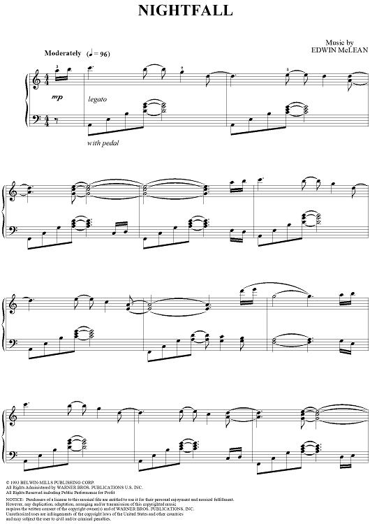Digital Sheet Music for Nightfall by Edwin McLean scored for Piano Solo; id:119942