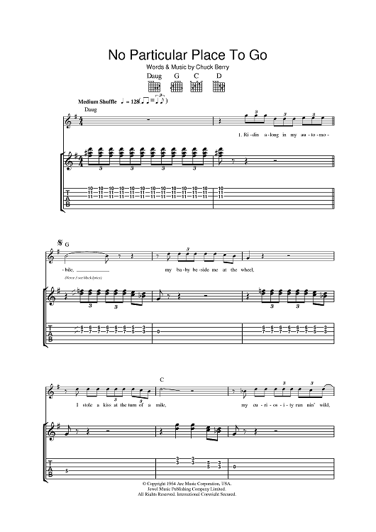Digital Sheet Music for No Particular Place To Go by Chuck Berry scored for Guitar Tab; id:393439