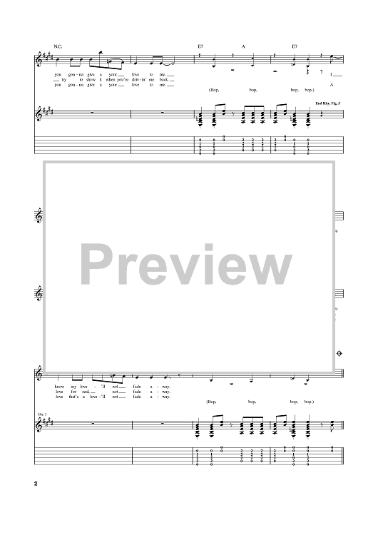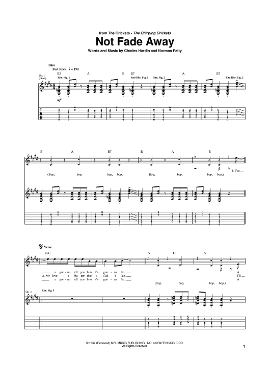 Digital Sheet Music for Not Fade Away by Norman Petty, Charles Hardin, Buddy Holly, The Crickets scored for Guitar Tab; id:385748