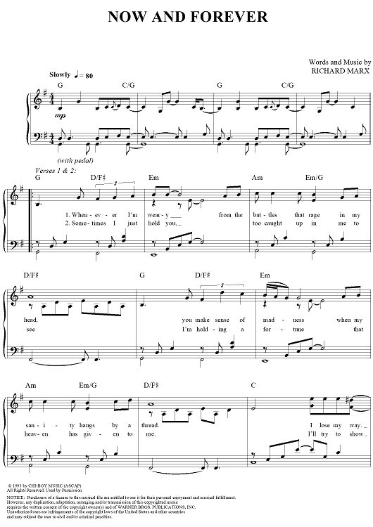 Digital Sheet Music for Now and Forever by Richard Marx scored for Piano/Vocal/Chords; id:119449