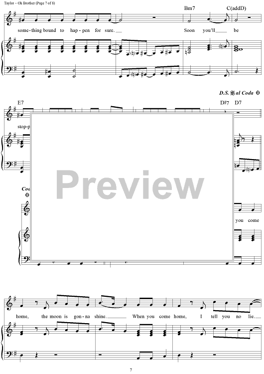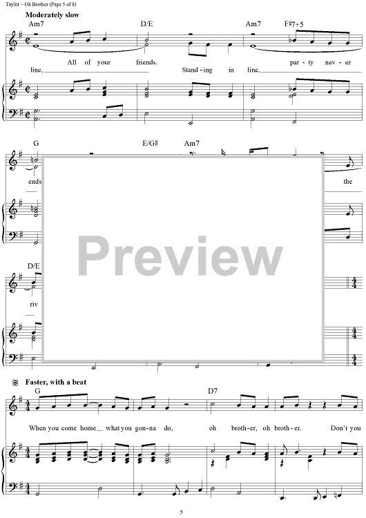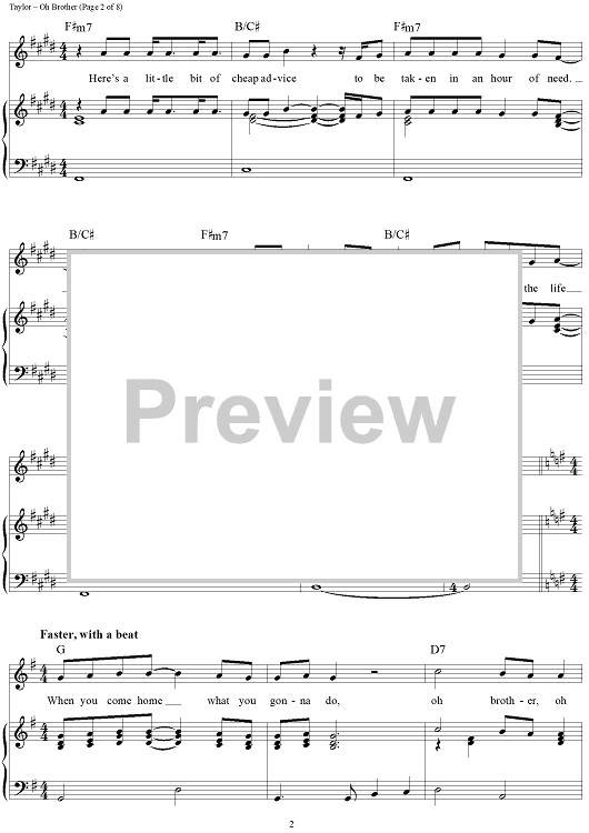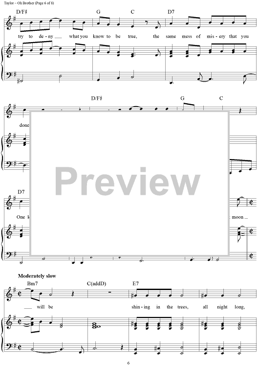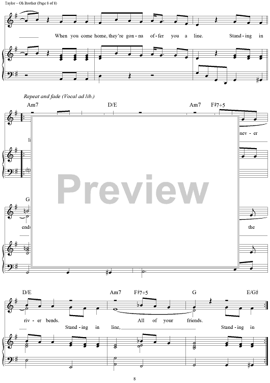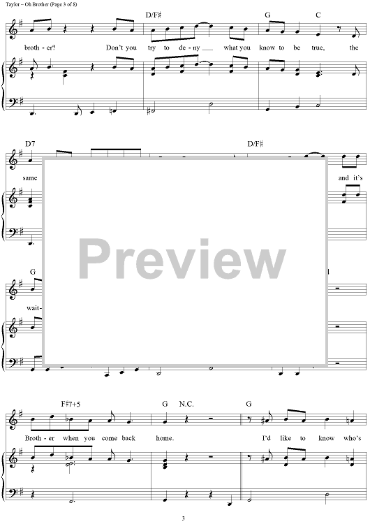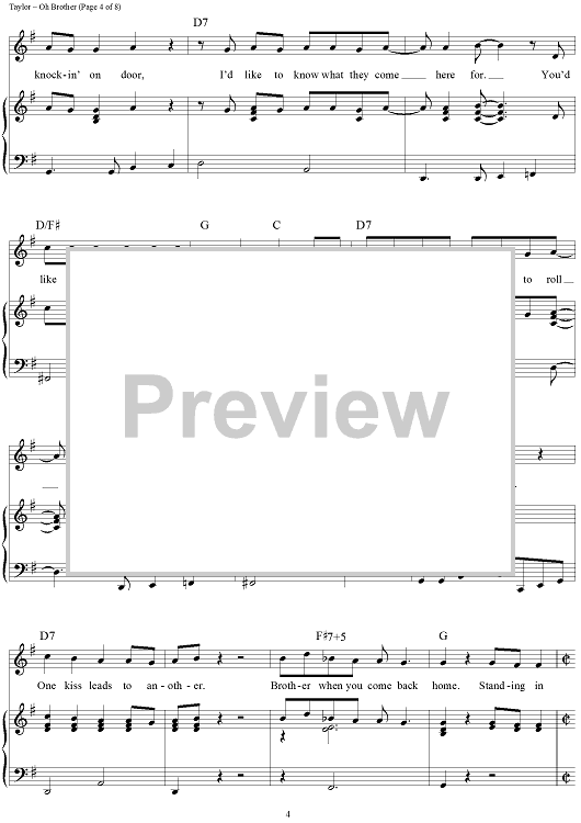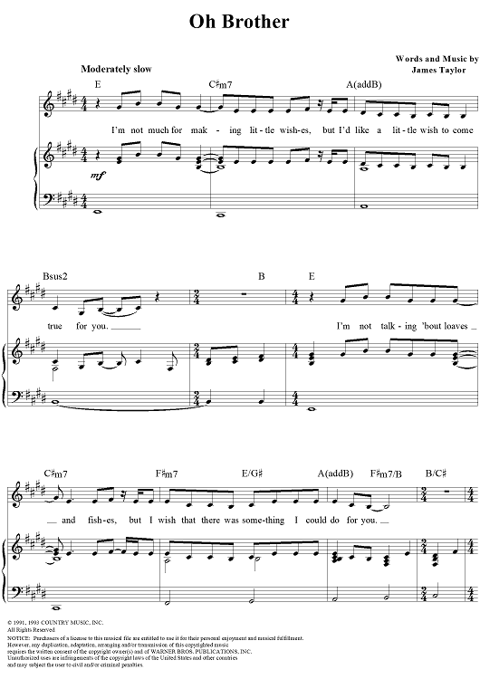Digital Sheet Music for Oh Brother by James Taylor scored for Piano/Vocal/Chords; id:113089