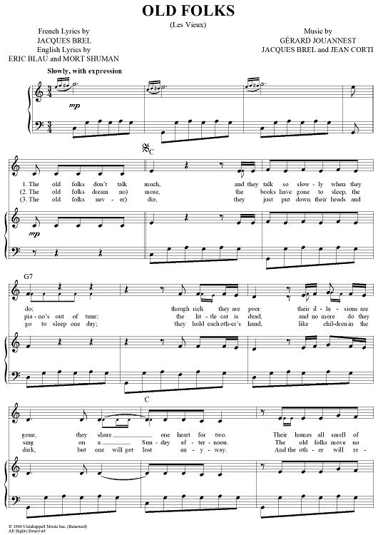 "Old Folks (Les Vieux)" Sheet Music by Jacques Brel