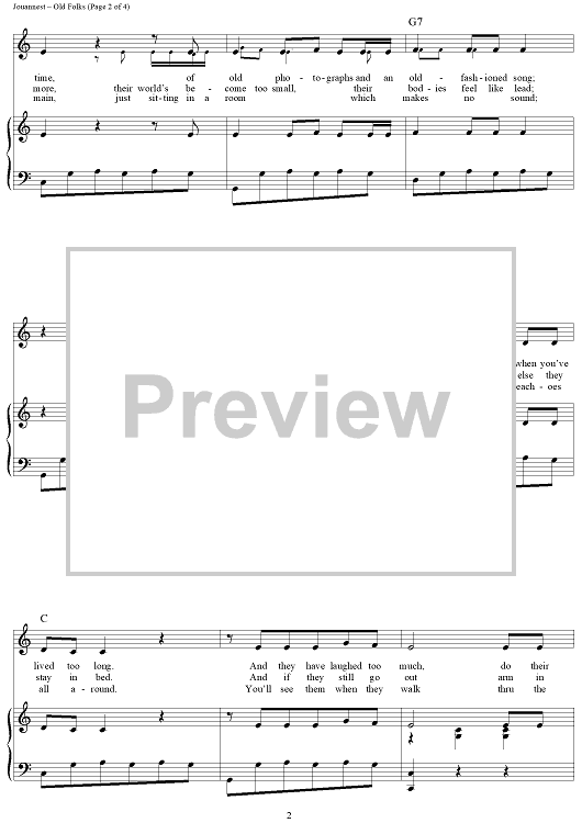 Digital Sheet Music for Old Folks (Les Vieux) by Jacques Brel, Gerard Jouannest, Jean Corti scored for Piano/Vocal/Chords; id:431624