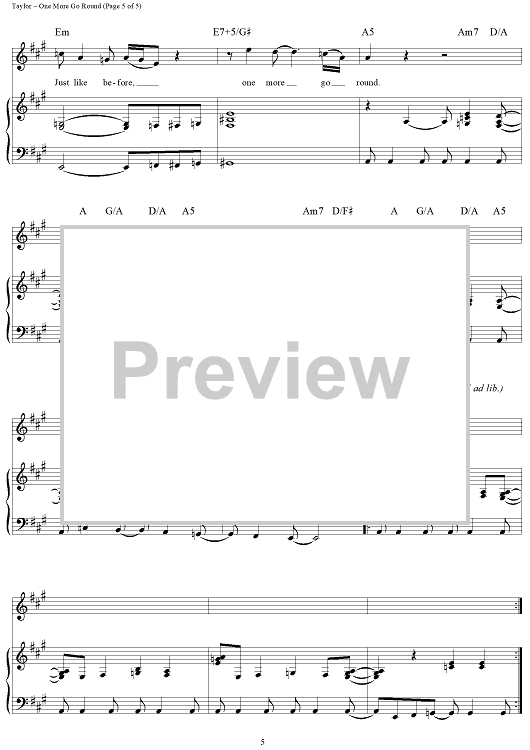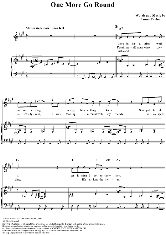 Digital Sheet Music for One More Go Round by James Taylor scored for Piano/Vocal/Chords; id:112392