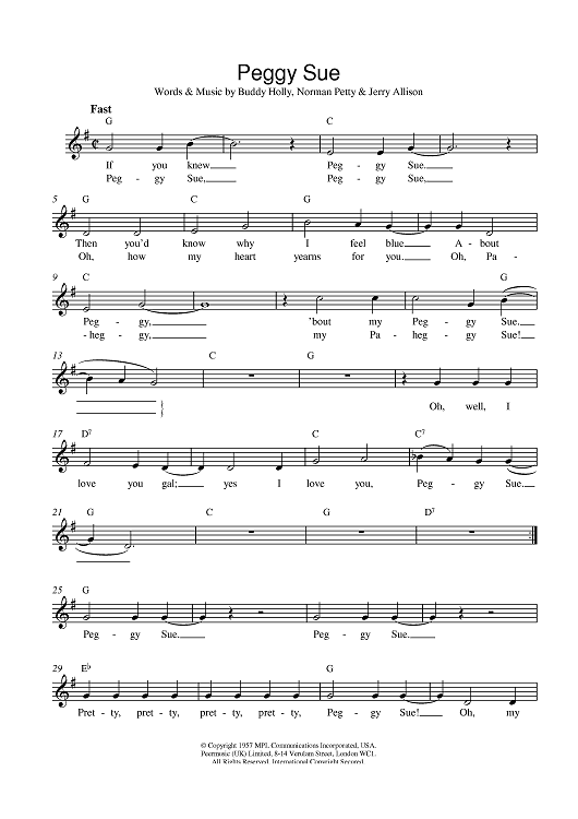 Digital Sheet Music for Peggy Sue by Norman Petty, Buddy Holly, Jerry Allison scored for Lead Sheet; id:380936