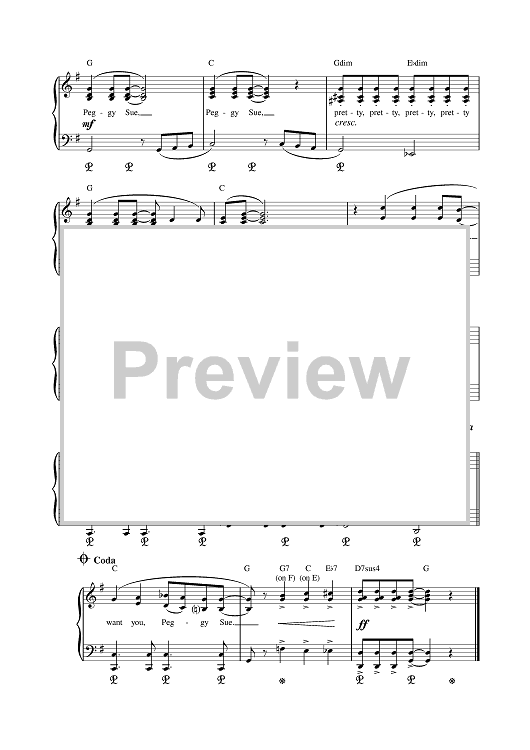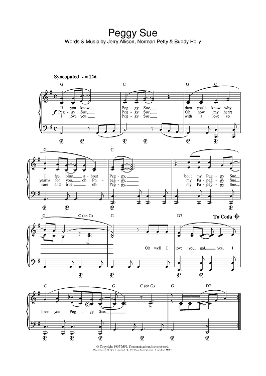 Digital Sheet Music for Peggy Sue by Norman Petty, Buddy Holly, Jerry Allison scored for Piano; id:380937