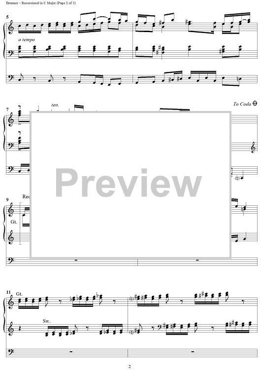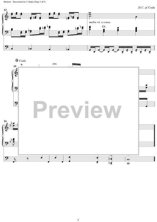 Digital Sheet Music for Recessional in C Major by Roy Brunner scored for Organ Solo; id:291202