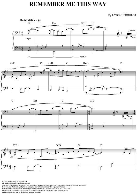 Digital Sheet Music for Remember Me This Way by Liz Story, Lydia Herholdt scored for Piano Solo; id:116402