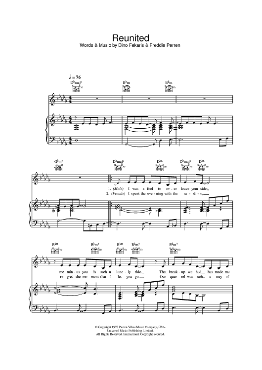 Digital Sheet Music for Reunited by Dino Fekaris, Freddie Perren, Peaches & Herb scored for Piano/Vocal/Chords; id:386927