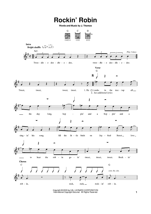 Digital Sheet Music for Rockin' Robin by Michael Jackson, Bobby Day, J. Thomas scored for Lead Sheet with Guitar Grids; id:372140