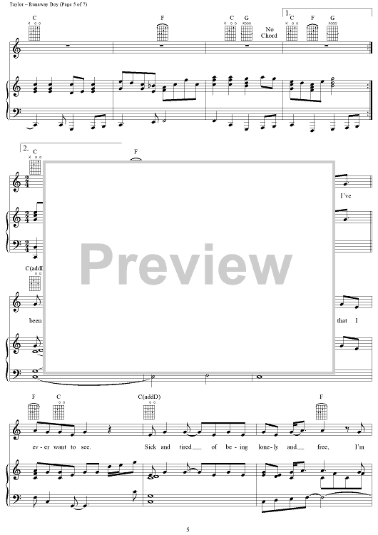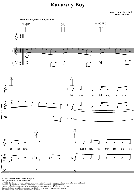 "Runaway Boy" Sheet Music by James Taylor