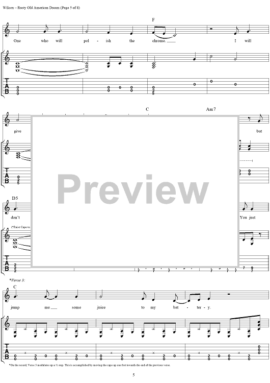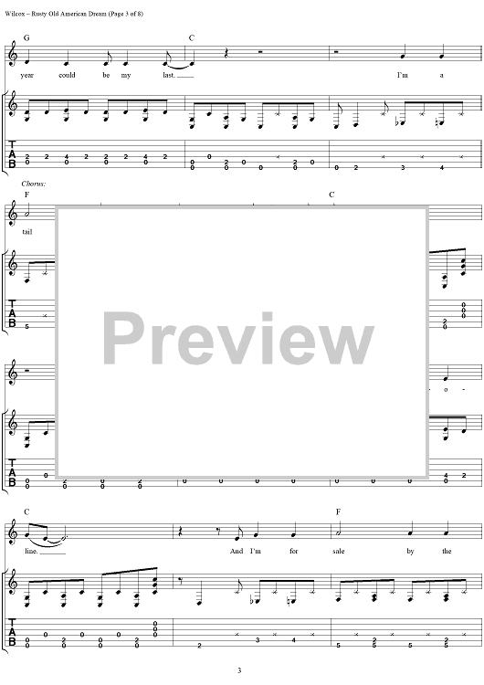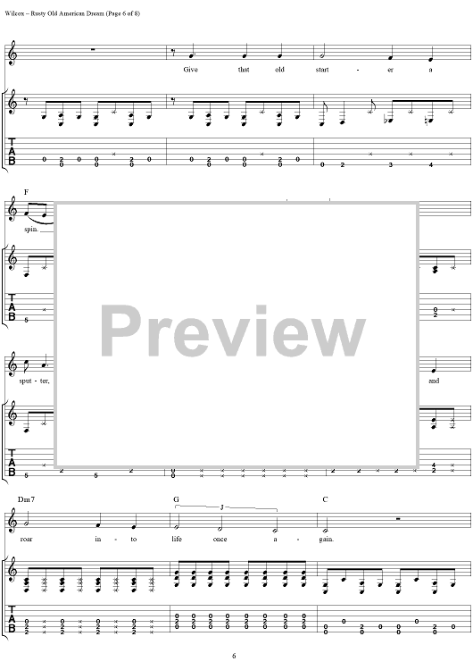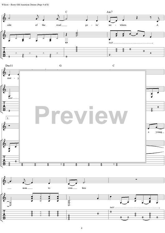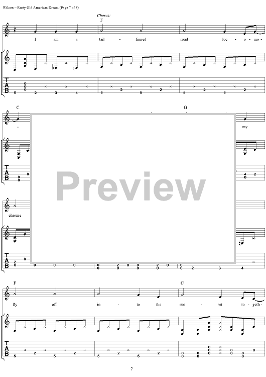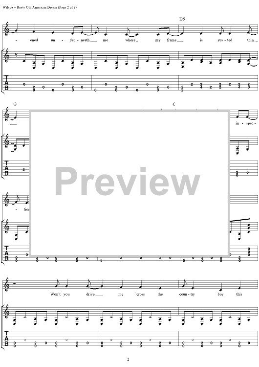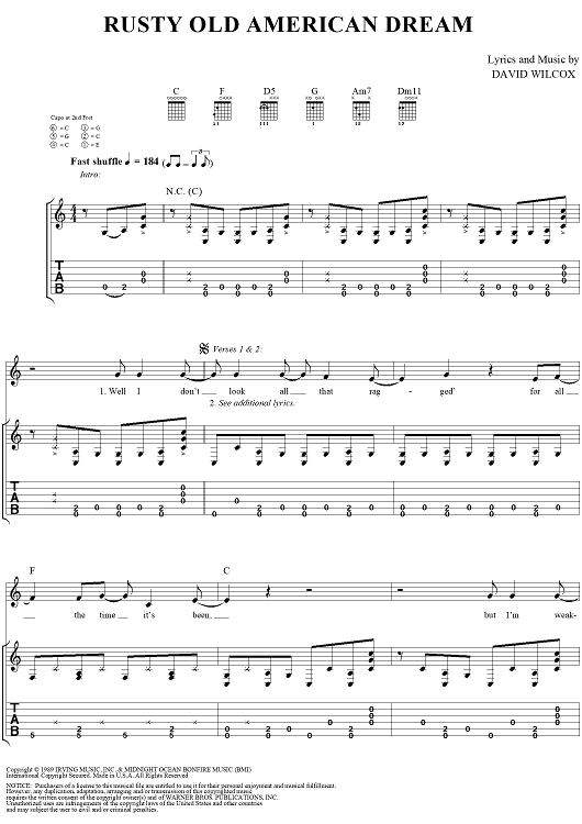 Digital Sheet Music for Rusty Old American Dream by David Wilcox scored for Guitar Tab/Vocal; id:263862