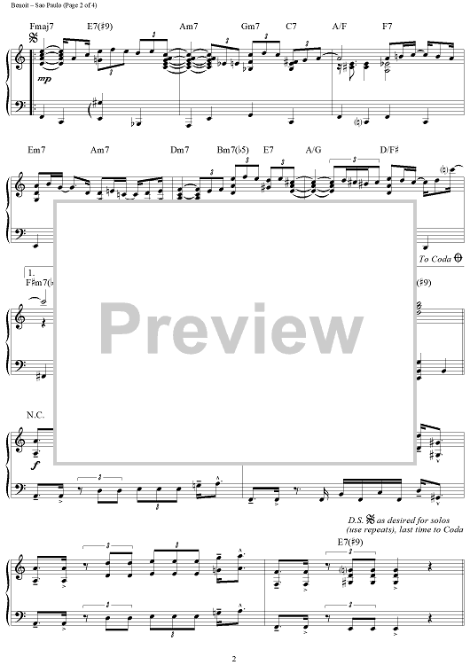 Digital Sheet Music for Sao Paulo by David Benoit scored for Piano Solo; id:275026