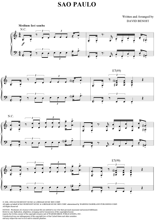 "Sao Paulo" Sheet Music by David Benoit
