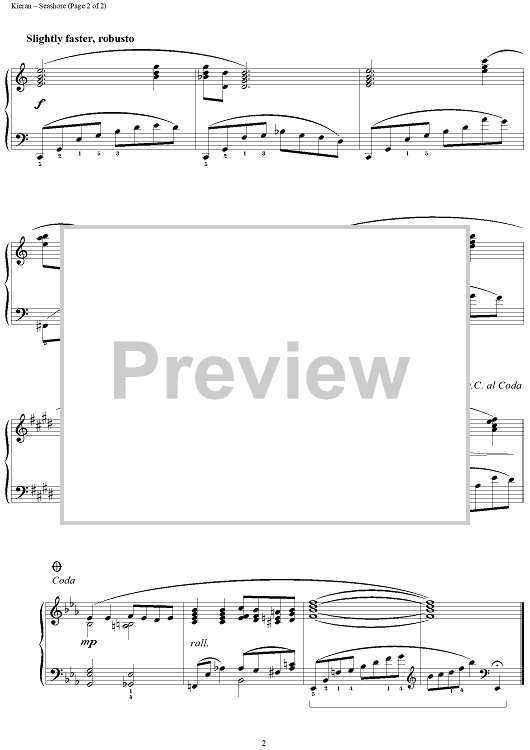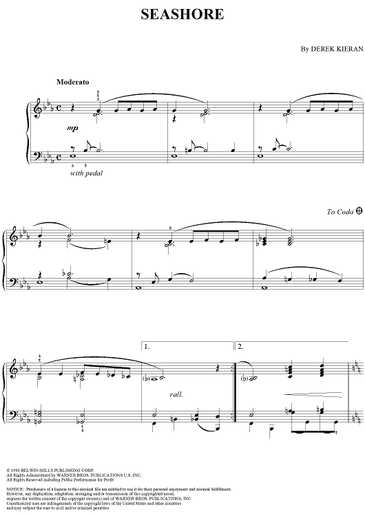 Digital Sheet Music for Seashore by Derek Kieran scored for Piano Solo; id:235586