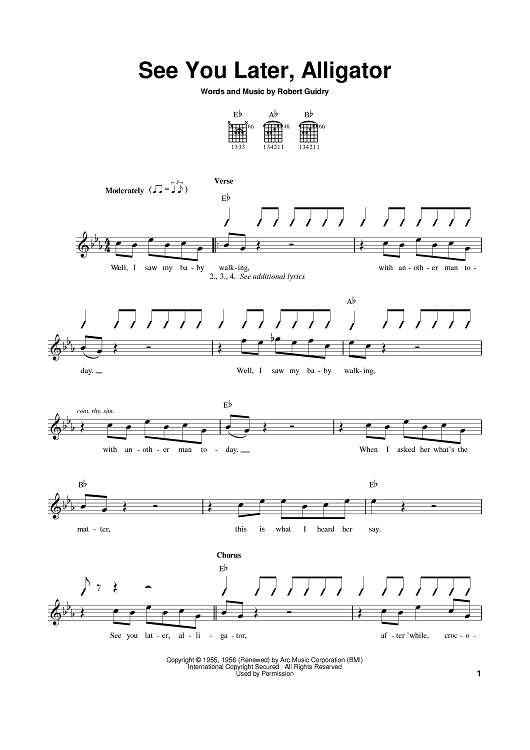 Digital Sheet Music for See You Later, Alligator by Bobby Charles, Bill Haley scored for Lead Sheet with Guitar Grids; id:372142