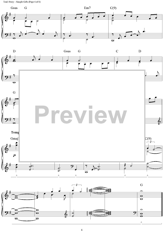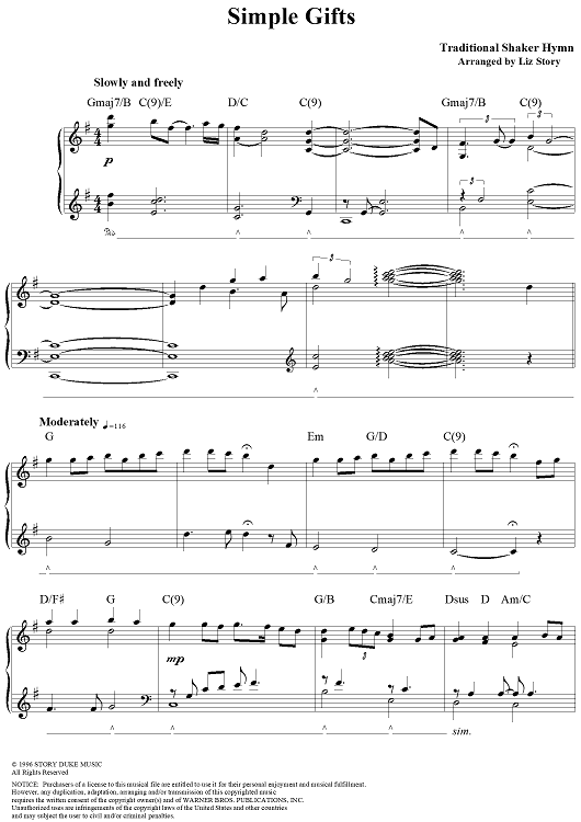 Digital Sheet Music for Simple Gifts by Liz Story, Traditional scored for Piano Solo; id:109776