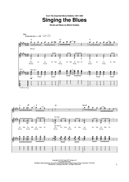 Digital Sheet Music for Singing The Blues by Marty Robbins, Guy Mitchell, Melvin Endsley scored for Guitar Tab; id:381443