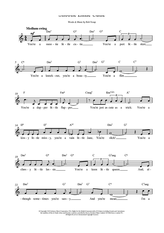 Digital Sheet Music for Snootie Little Cutie by Bobby Troup, Bob Troup scored for Lead Sheet; id:380926