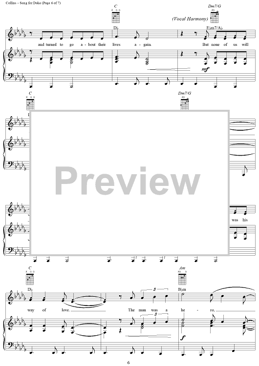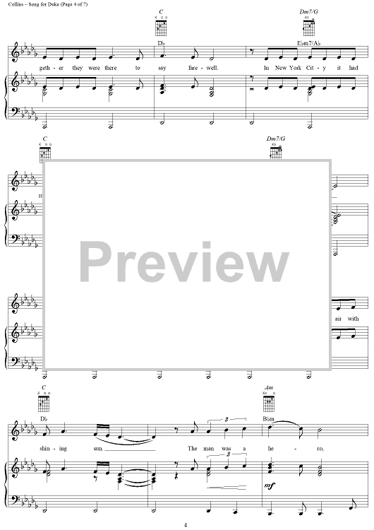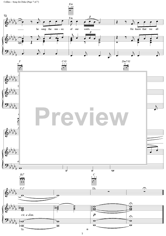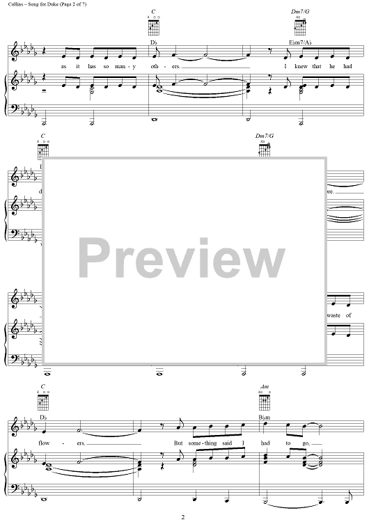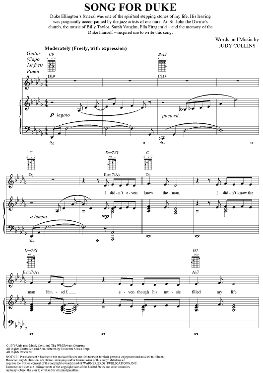 Digital Sheet Music for Song for Duke by Judy Collins scored for Piano/Vocal/Chords; id:285940