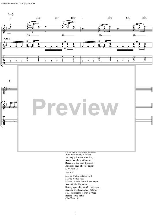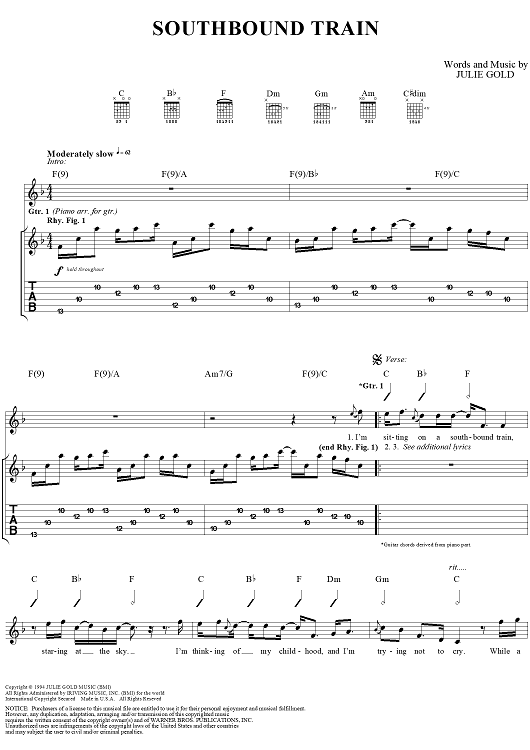 Digital Sheet Music for Southbound Train by Nanci Griffith, Julie Gold scored for Guitar Tab/Vocal; id:112351