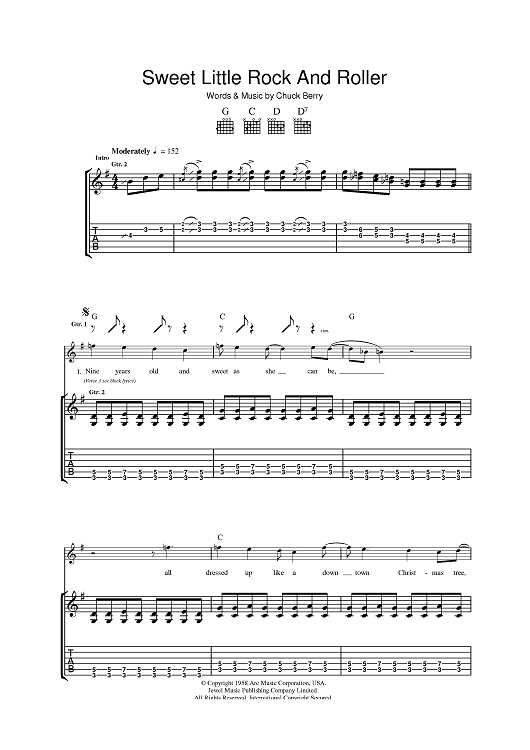 Digital Sheet Music for Sweet Little Rock And Roller by Chuck Berry scored for Guitar Tab; id:393440