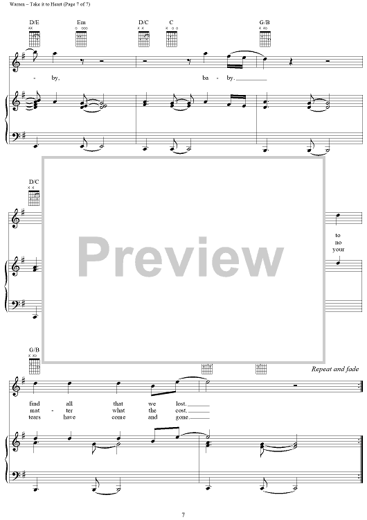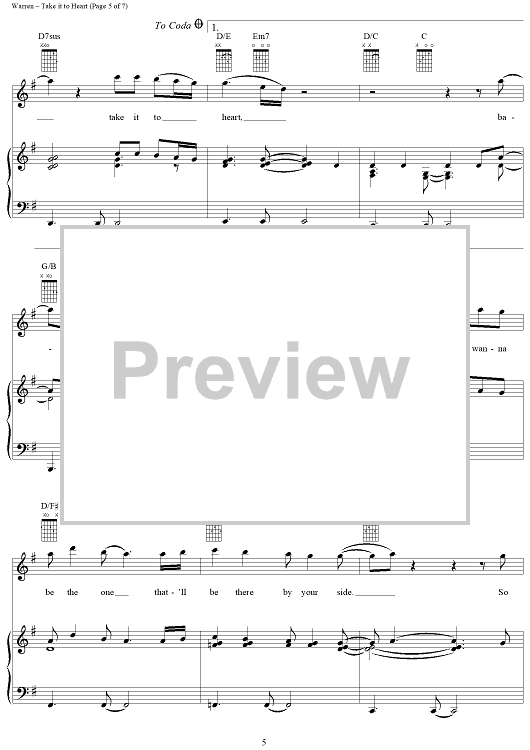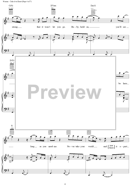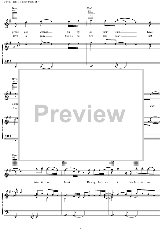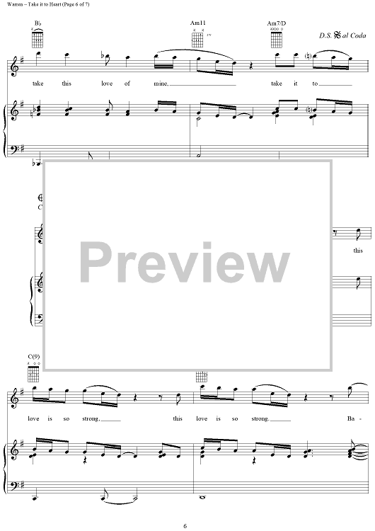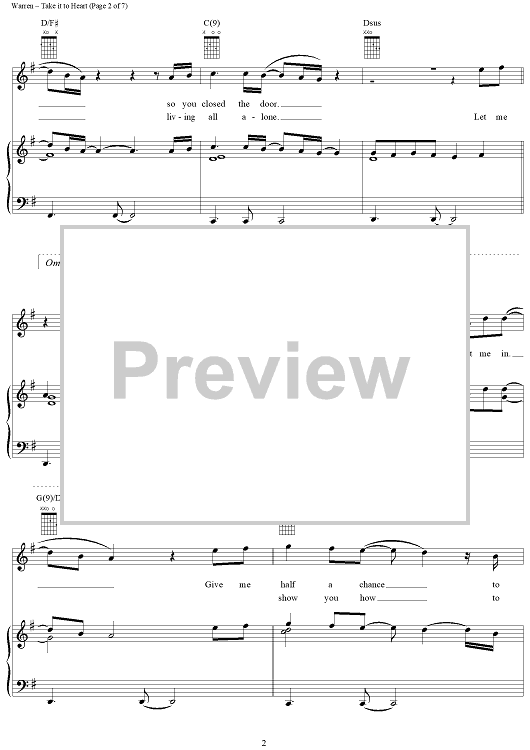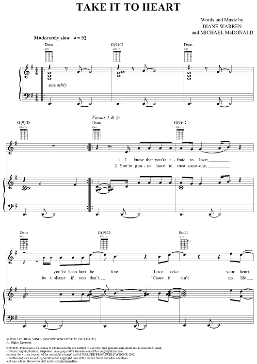 Digital Sheet Music for Take It to Heart by Diane Warren, Michael McDonald scored for Piano/Vocal/Chords; id:119540