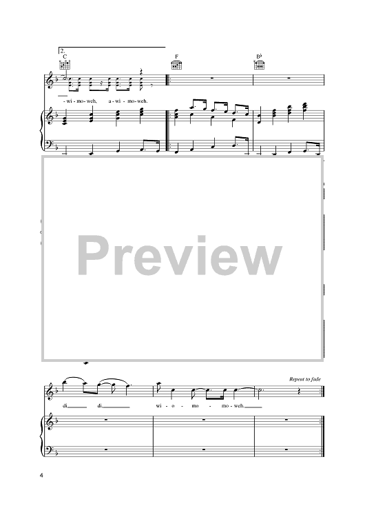 Digital Sheet Music for The Lion Sleeps Tonight (Wimoweh) by Luigi Creatore, George David Weiss, Hugo Peretti, Tight Fit scored for Piano/Vocal/Chords; id:385500