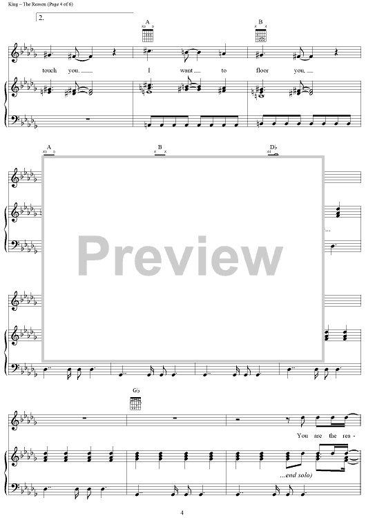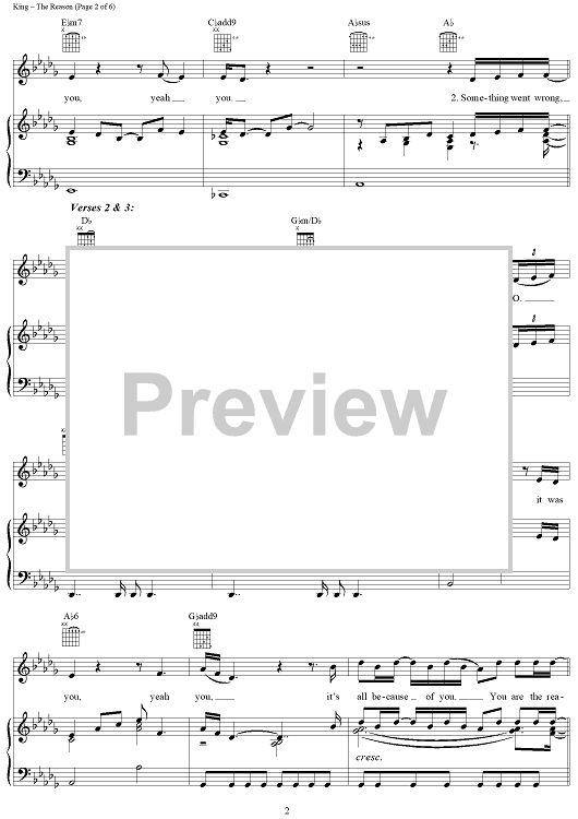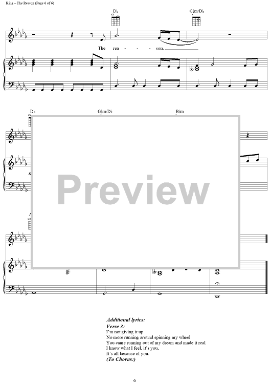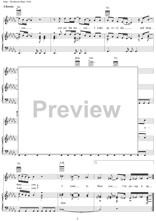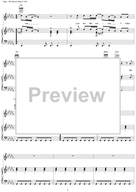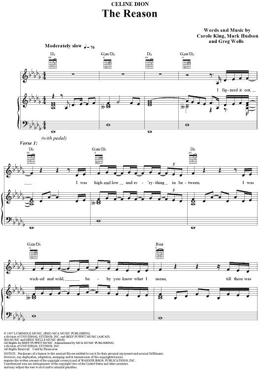 Digital Sheet Music for The Reason by Celine Dion, Carole King, Mark Hudson, Greg Wells scored for Piano/Vocal/Chords; id:111372
