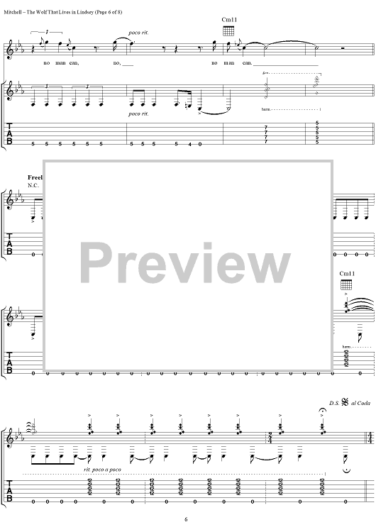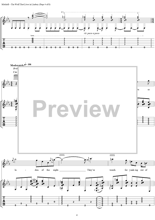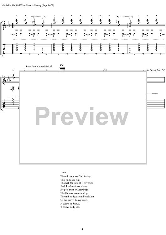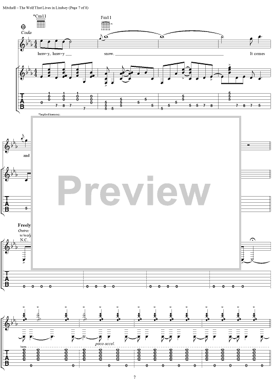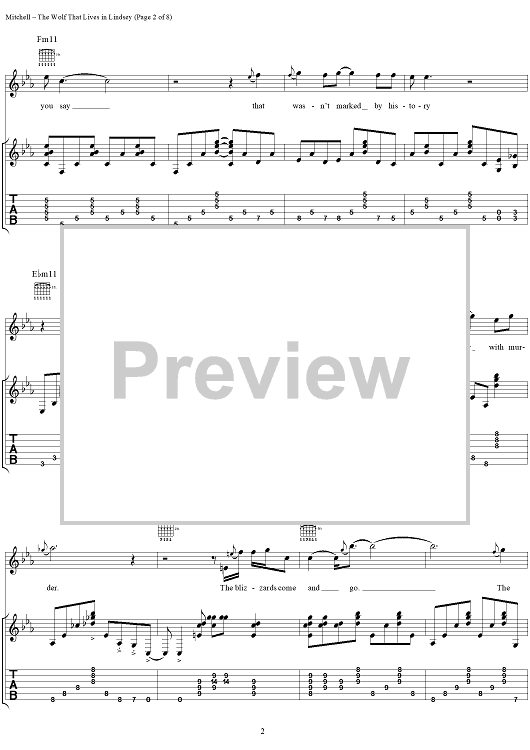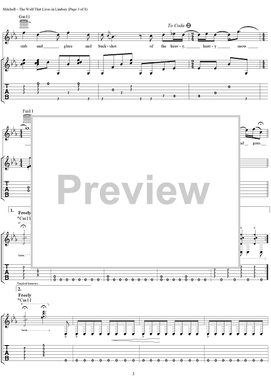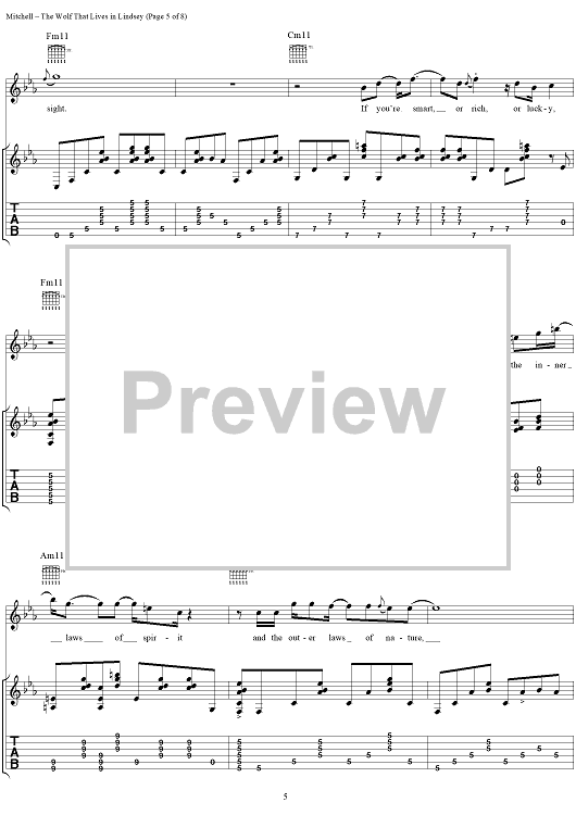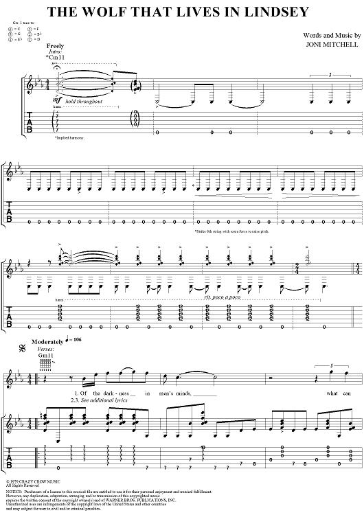 "The Wolf That Lives in Lindsey" Sheet Music by Joni Mitchell