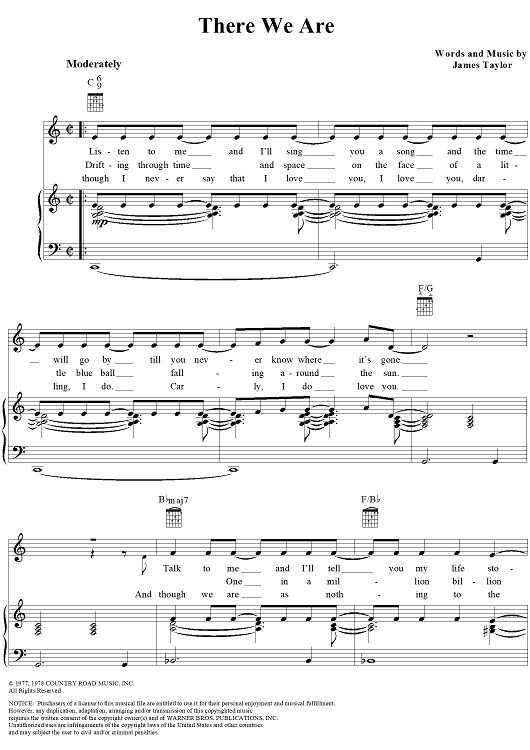 Digital Sheet Music for There We Are by James Taylor scored for Piano/Vocal/Chords; id:111705