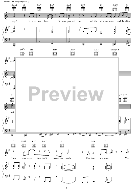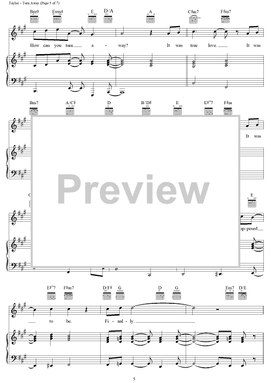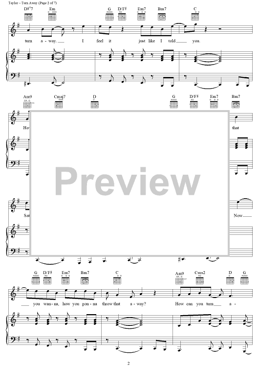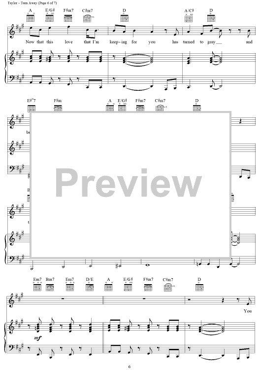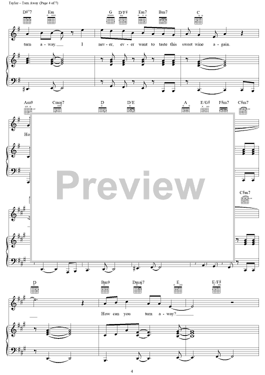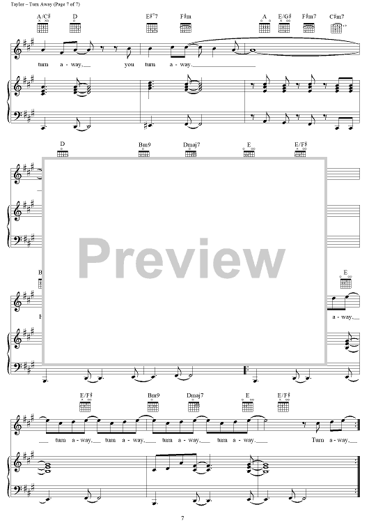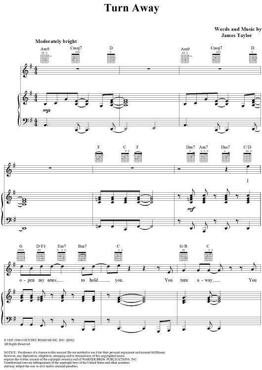 Digital Sheet Music for Turn Away by James Taylor scored for Piano/Vocal/Chords; id:112332