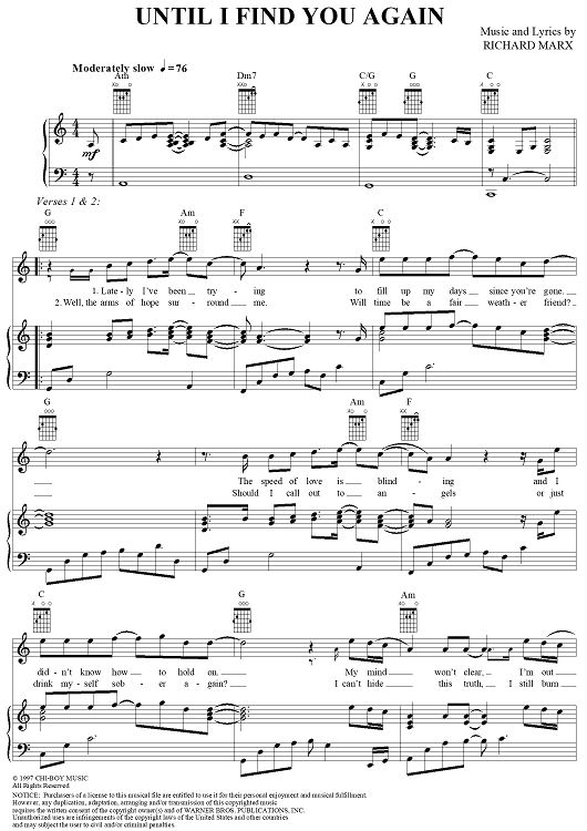 Digital Sheet Music for Until I Find You Again by Richard Marx scored for Piano/Vocal/Chords; id:112691