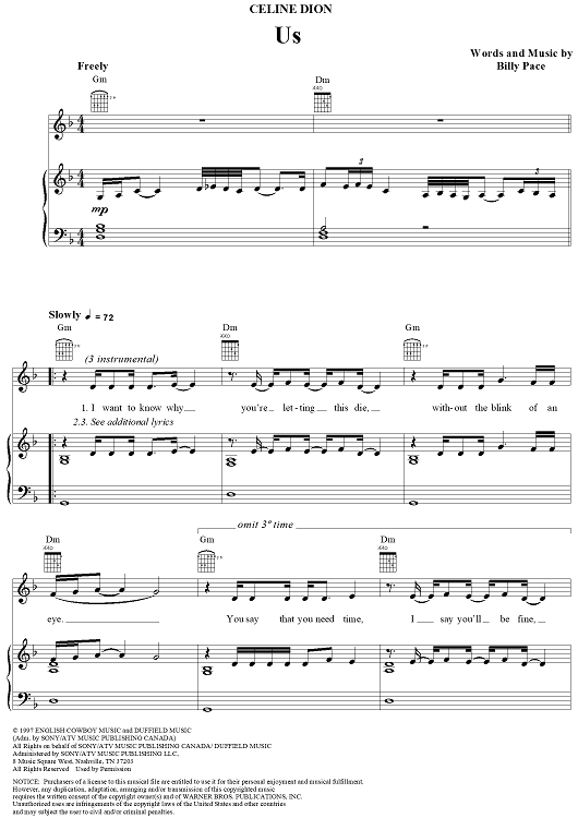 Digital Sheet Music for Us by Celine Dion, Billy Pace scored for Piano/Vocal/Chords; id:112068