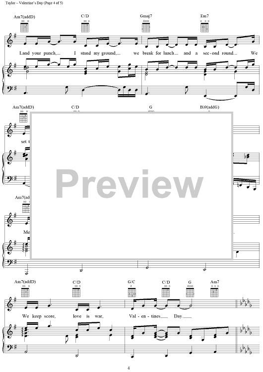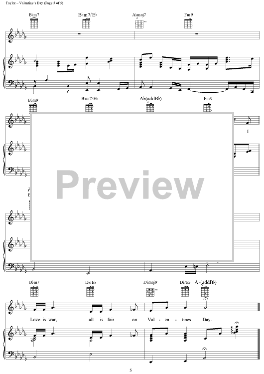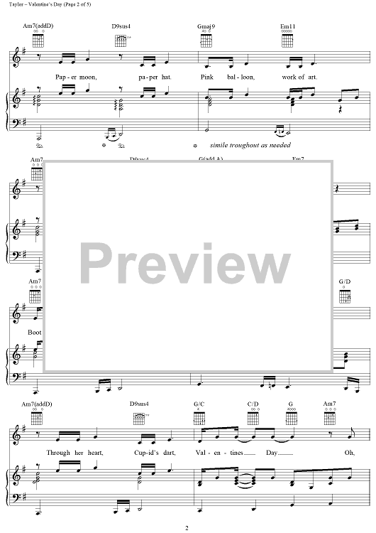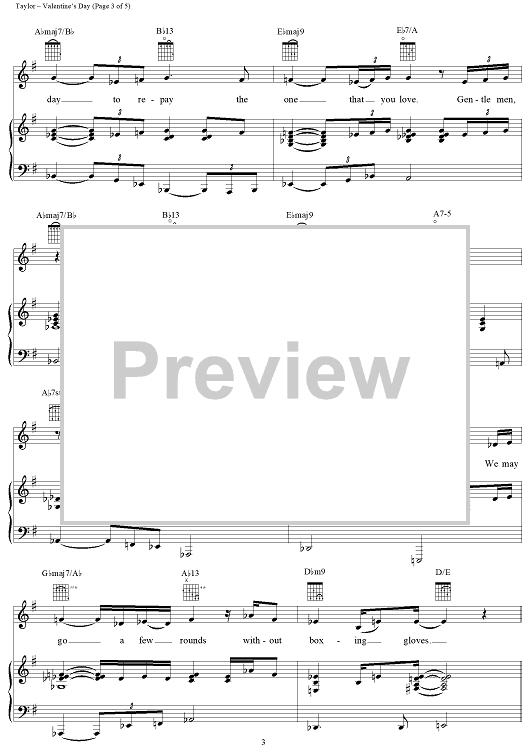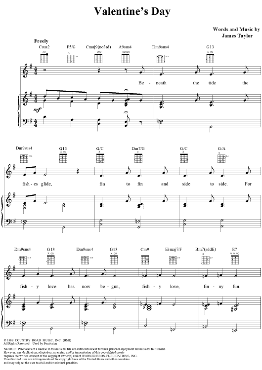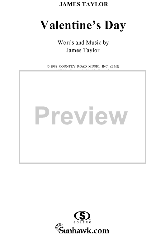 Digital Sheet Music for Valentine's Day by James Taylor scored for Piano/Vocal/Chords; id:112262