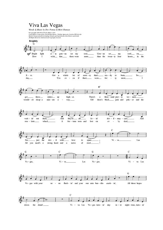 Digital Sheet Music for Viva Las Vegas by Elvis Presley, Doc Pomus, Mort Shuman scored for Lead Sheet; id:380972